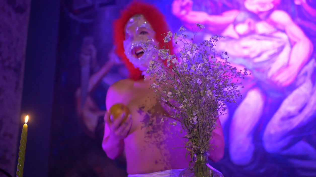 My original idea was to create a show where I would simply play on stage with things that I knew brought my pleasure, like dancing and fondling fruits, with the idea of showing folx they too could simply enjoy pleasure with simple objects. However, in the process of creation, I kept being interrupted by monsters in the way of my own enjoyment of making the piece. I was confronted harshly with my perfectionism, grief, and ultimately the question of whether or not I was even deserving of pleasure at all.